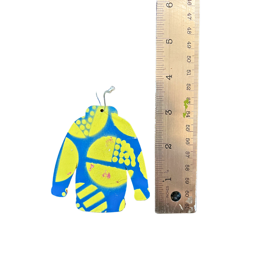 These tacky sweater ornaments are fun, funky, and fabulous! Bring a pop of color to your holiday season with a wood ornament cut in the shape of a tacky sweater. With bright patterns on both sides, each ornament is one-of-a-kind.